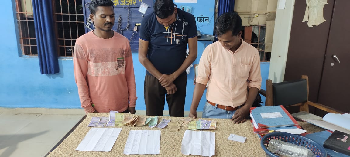 - प्रीतम कुमार मारण्डेय पिता कन्हैया दास उम्र 34 साल साकिन ग्राम उरईडबरी पुलिस चौकी चिचोला जिला राजनांदगंाव (छ0ग0) को ग्राम उरईडबरी पटपर जाने की रोड के पास अवैध रूप से रूपये-पैसे का दंाव लगाकर सट्टा-पट्टी लिखते पाये जाने पर आरोपी के कब्जे से 01 सट्टा-पट्टी, 01 डॉटपेन एवं नगदी रकम 430/-रू0 जप्त कर आरोपी के विरूद्ध अपराध क्रमांक- 426/2022 धारा- 4(क) जुआ एक्ट की कार्यवाही किया गया है।
