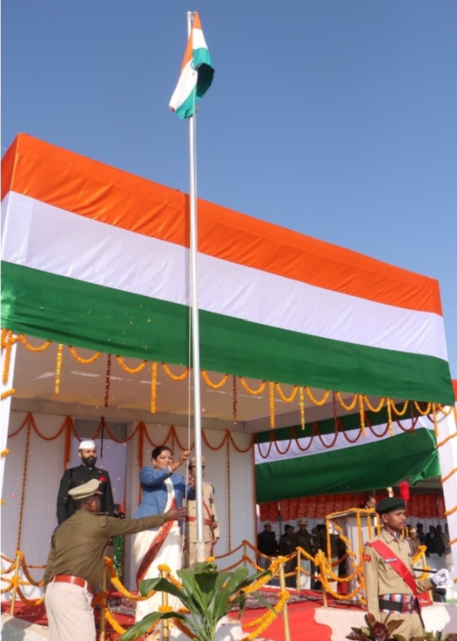 सूरजपुर । शासकीय बालक उच्चतर माध्यमिक विद्यालय, सूरजपुर के स्टेडियम ग्राउंड में भरतपुर विधायक रेणुका सिंह के मुख्य आतिथ्य में गणतंत्र दिवस समारोह कार्यक्रम का आयोजन किया गया। उन्होंने जिला मुख्यालय सूरजपुर के स्टेडियम ग्राउंड में होने वाले आयोजित समारोह में ध्वजारोहण कर, परेड की सलामी ली। इसके पश्चात मुख्यमंत्री के सन्देश का वाचन किया।