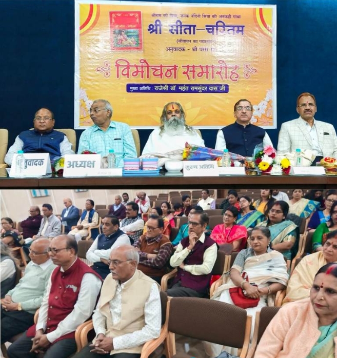 रायपुर । परसराम साहू से.नि. उप महाप्रबंधक भारत संचार निगम लिमिटेड (बी.एस.एन.एल.) द्वारा पद्यानुवाद की पुस्तक ’’श्री सीता चरितम’’ पुस्तक का विमोचन 29 जनवरी को वृंदावन हॉल सिविल लाईन रायपुर में दुधाधारी मठ के महंत राजे डॉ. रामसुन्दर दास के मुख्य आतिथ्य, विजय कुमार छबलानी (आई.टी.एस.) मुख्य महाप्रबंधक, बी.एस.एन.एल छ.ग., मेजर डॉ जीके श्रीवास्तव, प्राफेसर एवं डीन इंदिरा गांधी कृषी महाविद्यालय के विशिष्ट आतिथ्य में एवं डॉ. राजेश दुबे, प्राचार्य शहीद राजीव पाण्डेय शास. महाविद्यालय रायपुर की अध्यक्षता में किया गया।
