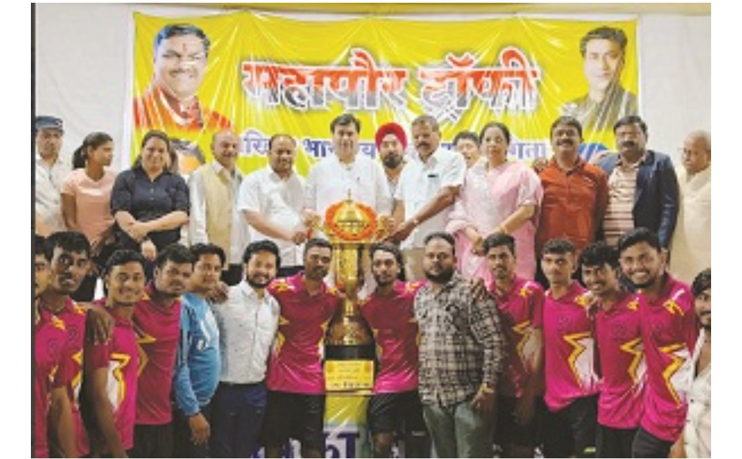 दुर्ग । नगर पालिक निगम द्वारा आयोजित अखिल भारतीय महापौर हॉकी ट्रॉफी महिला समृद्धि बाजार के सामने सिविल लाइन में हॉकी टूर्नामेंट के समापन कार्यक्रम में शामिल हुए मुख्य अतिथि महापौर धीरज बाकलीवाल विजेता टीम के खिलाडिय़ों को पुरस्कृत कर उत्साहवर्धन किया। मौके आयुक्त लोकेश चन्द्राकर,सभापति राजेश यादव, शिक्षा, राजेन्द्र साहू, खेलकुद एवं युवा कल्याण विभाग प्रभारी मनदीप सिंह भाटिया, दीपक साहू, वार्ड पार्षद नजहत परवीन, हमीद खोखर, भोला महोविया में किया गया।