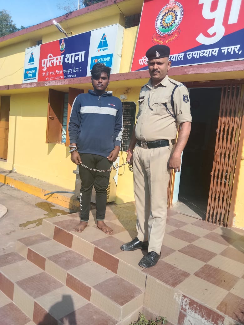 गिरफ्तार आरोपी – प्रतीक तांडी पिता जीतेन्द्र तांडी उम्र 20 वर्ष छोटा हनुमान मंदिर के पास डगनिया थाना डी डी नगर रायपुर।